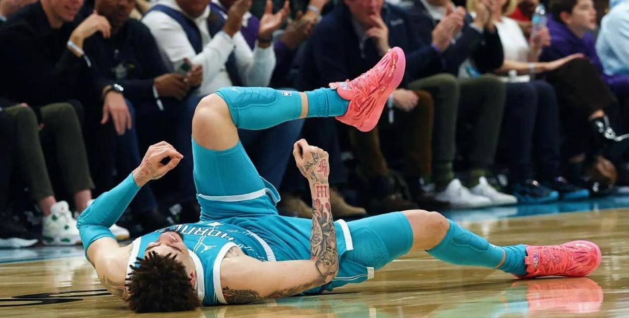 黄蜂队这赛季总算打出点样子了,尤其是LaMelo Ball,以前大家老叫他玻璃人,现在他已经稳稳打了45场,场均能拿19.3分、4.8篮板、7.4助攻,外加1.1抢断,投篮命中率40.1%,三分36.3%,罚球88.5%。